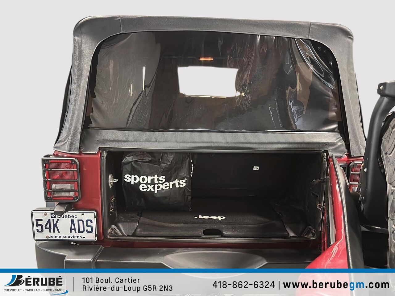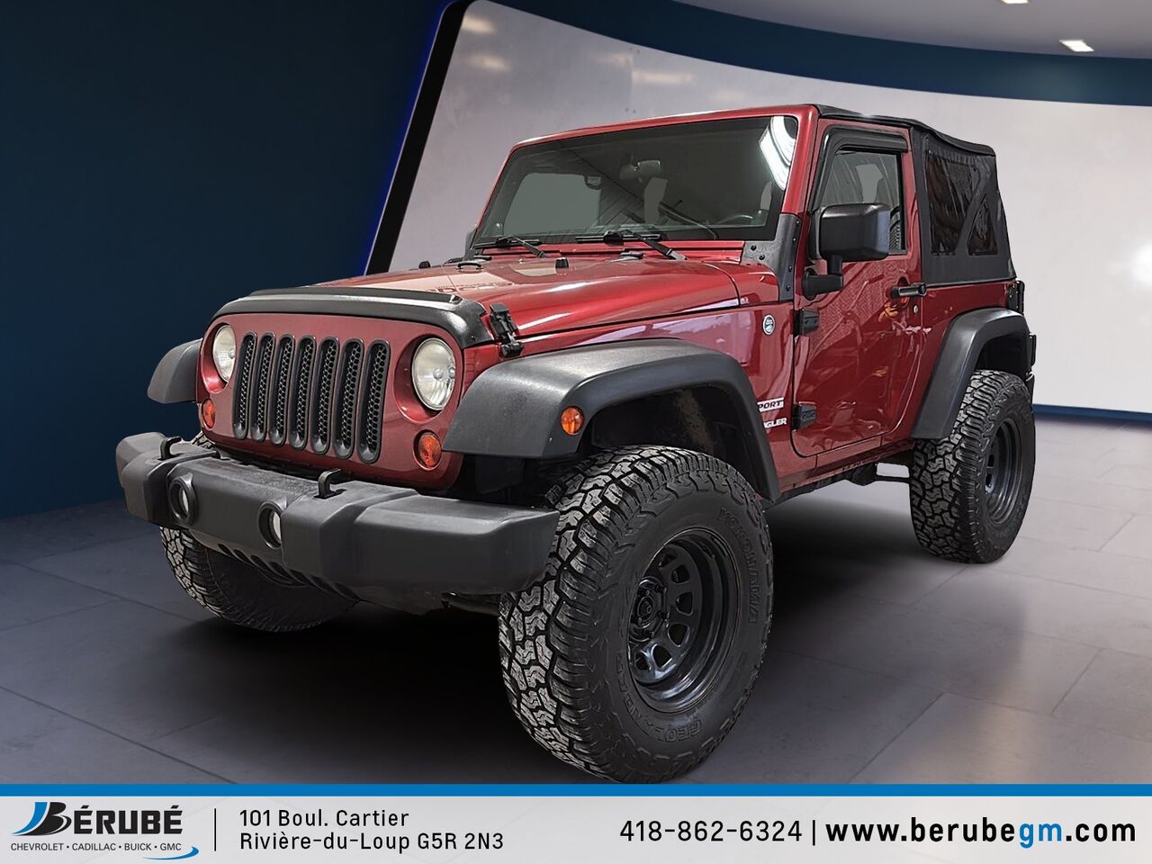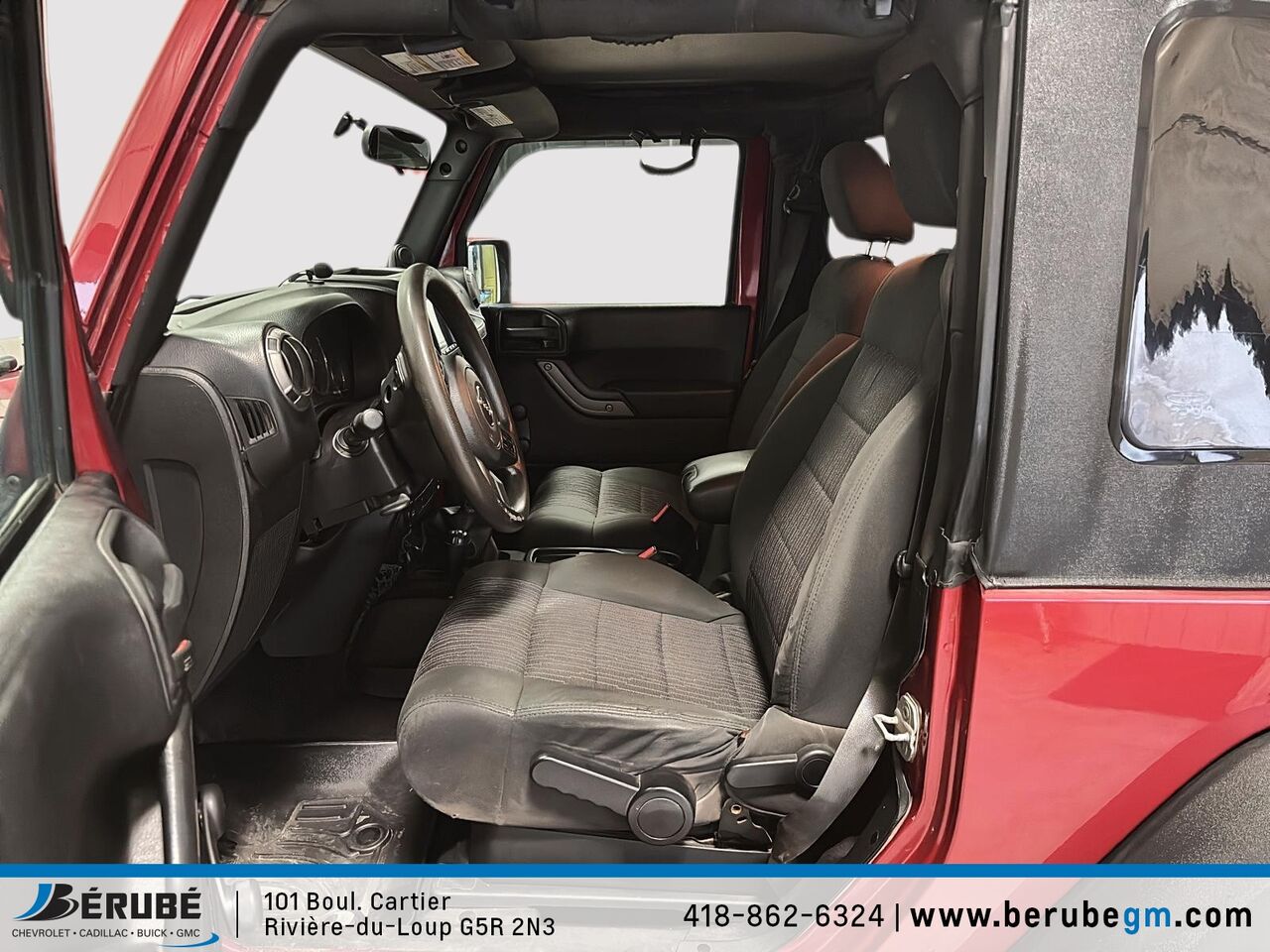 This 2012 Jeep Wrangler is available at Bérubé Chevrolet Buick GMC - Cadillac in Rivière-du-Loup. Contact our sales team or come meet us at 101 Bd Cartier for more details, for a test drive, or to make a reservation.
