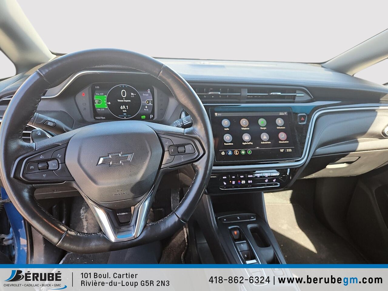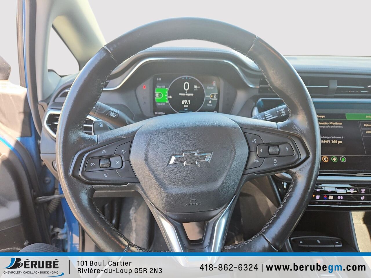 Ce CHEVROLET BOLT EV 2022 est disponible chez Bérubé Chevrolet Buick GMC - Cadillac à Rivière-du-Loup. Contactez notre équipe des ventes ou venez nous visiter au 101 Bd Cartier pour obtenir plus d'informations, en faire l'essai ou le réserver.