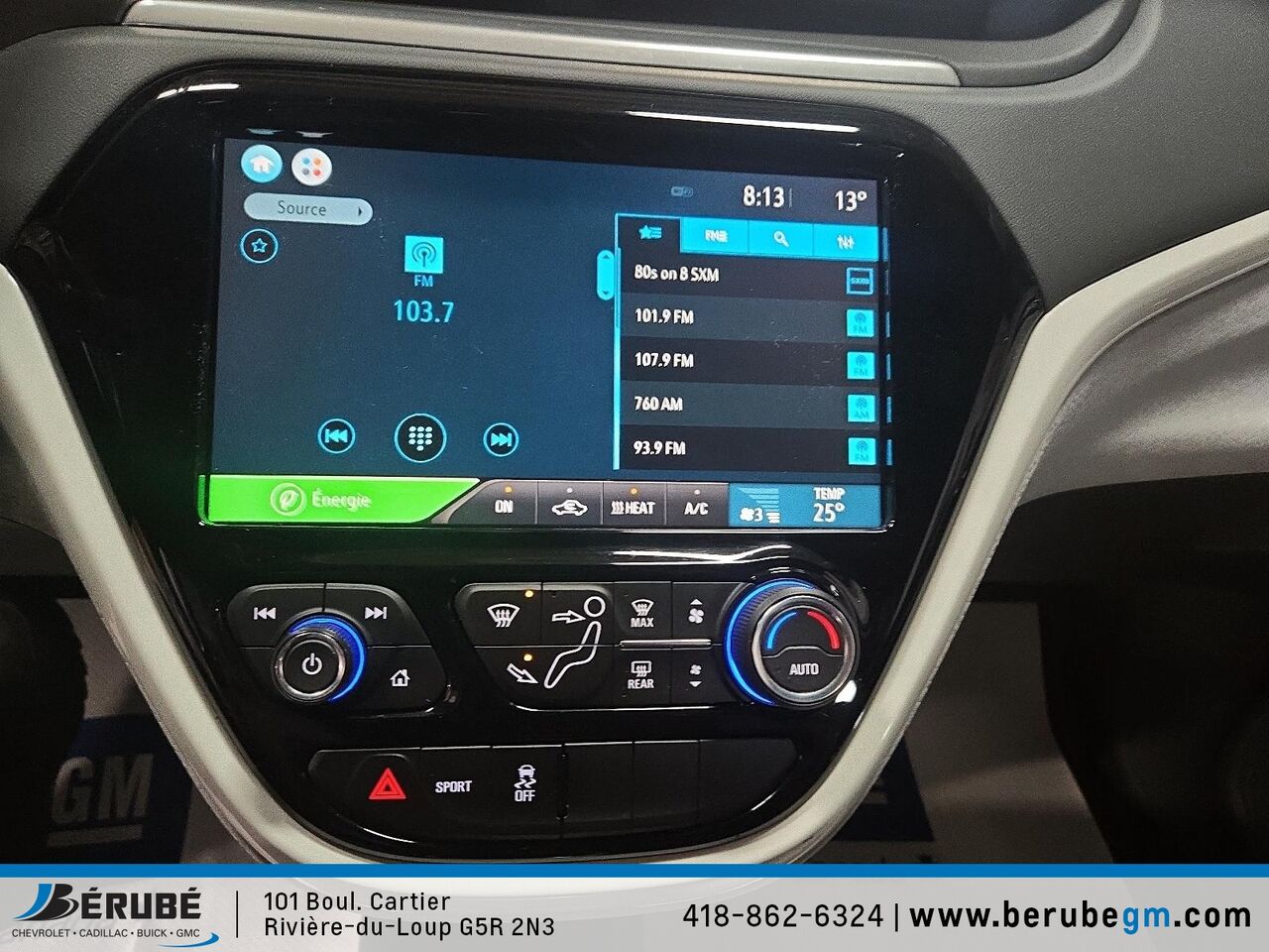 Ce CHEVROLET BOLT EV 2020 est disponible chez Bérubé Chevrolet Buick GMC - Cadillac à Rivière-du-Loup. Contactez notre équipe des ventes ou venez nous visiter au 101 Bd Cartier pour obtenir plus d'informations, en faire l'essai ou le réserver.